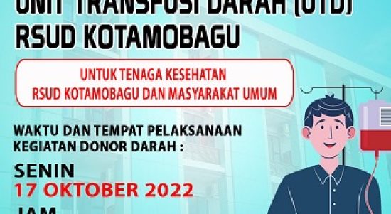 RSUD Kotamobagu Bakal Launching Unit Transfusi Darah Berita, BERITA UTAMA, DAERAH, Kesehatan, KOTAMOBAGU, Pemerintahan|14/10/2022by Administrator mediatotabuan.co, Kotamobagu – Jika tidak ada aral melintang, Rumah Sakit Umum Daerah