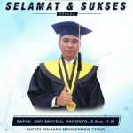 Diwisuda Pasca Sarjana, Bupati Sachrul: Pendidikan tak Mengenal Usia Berita, BERITA UTAMA, BOLTIM, DAERAH, Nasional, Pemerintahan, PENDIDIKAN, Sulawesi Utara|10/02/202210/02/2022by Administrator mediatotabuan.co, Boltim – Bupati Bolaang Mongondow Timur (Boltim), Sam Sachrul Mamonto, S.Sos,