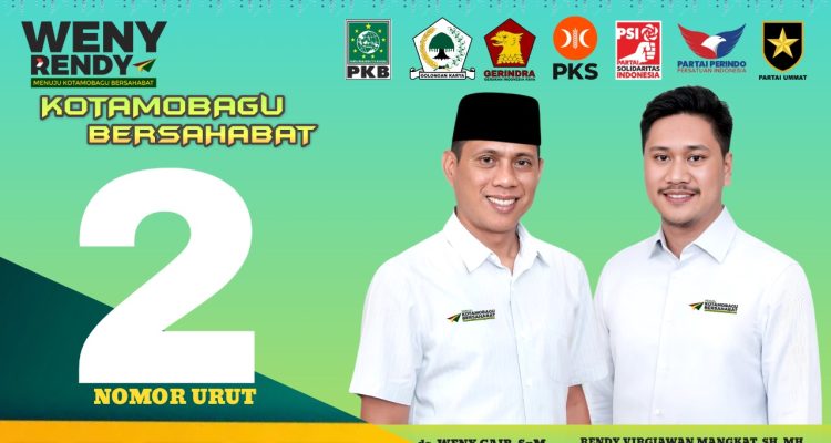 Pilwako Kotamobagu Pilkada Kotamobagu, Weny-Rendy Urut 2 Simbol Kemenangan dan Keseimbangan BERITA UTAMA|23/09/202423/09/2024by Administrator MEDIATOTABUAN, KOTAMOBAGU – Pasangan calon Walikota dan Wakil Walikota Kotamobagu, dr. Weny